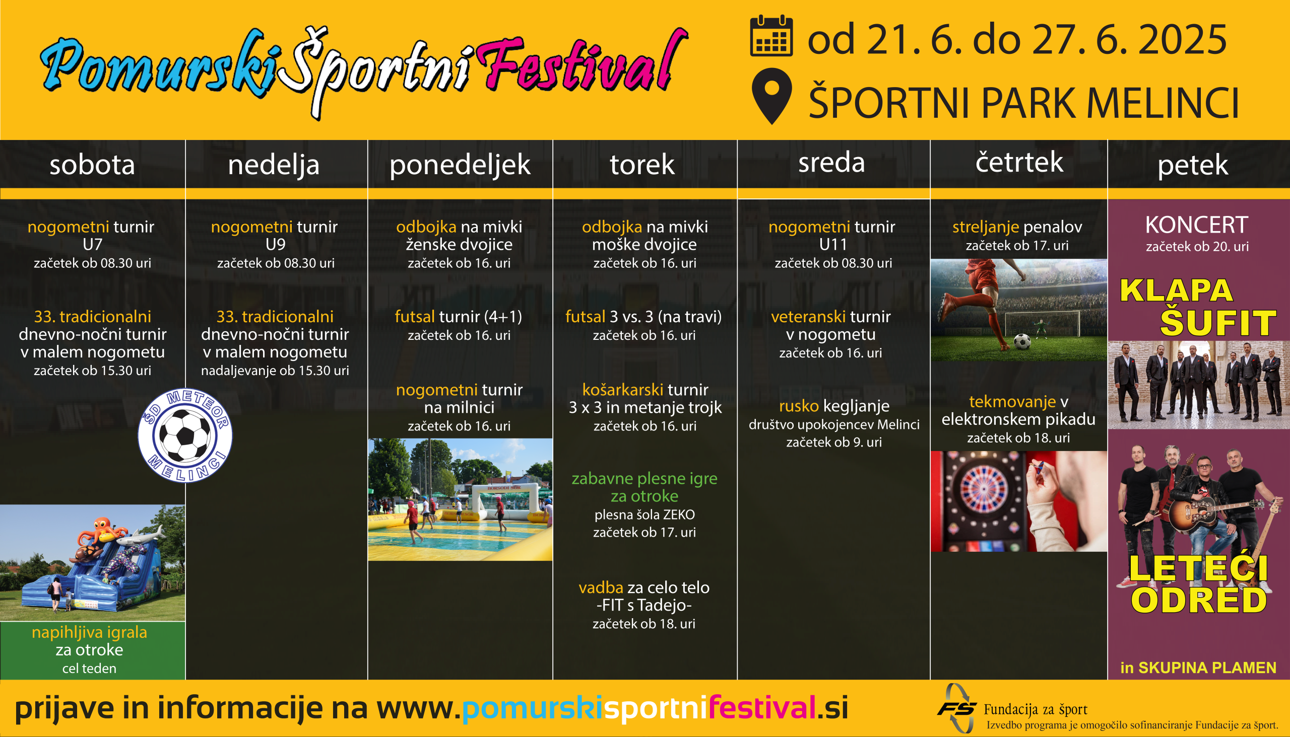 7 dni športa in zabave ➡️ 21. 6. do 27. 6. 2025 ➡️ športni park Melinci. 🤗 Prijave in informacije: https://pomurskisportnifestival.si/program